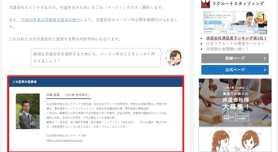 派遣会社専門サイト「派遣のカタログ」で代表小岩が監修。