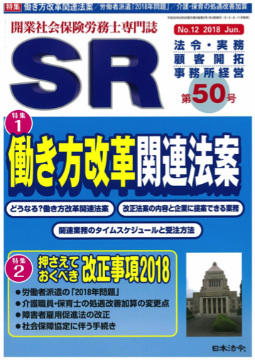 代表小岩が、『開業社会保険労務士専門誌 SR』50号の特集記事「押さえておくべき改正事項2018」に寄稿しました。