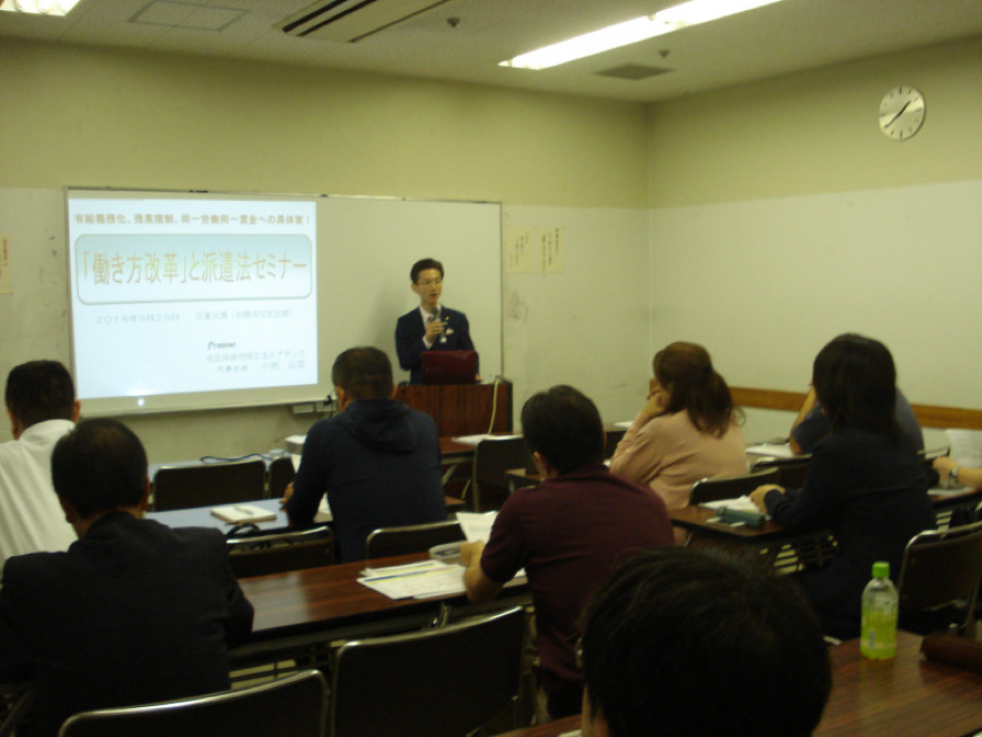 「働き方改革」対応セミナーを三重(鈴鹿)と名古屋の2か所で開催しました。両会場ともにご熱心な方々にご参加いただき、終了後も複数の方から熱心なご質問をいただきました。
