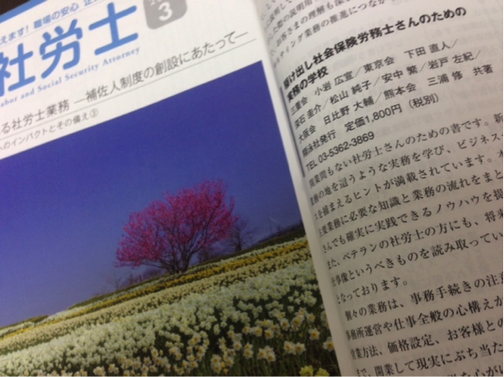 全国社会保険労務士会連合会の機関誌である『月刊社会保険労務士』2015年3月号で、代表小岩編著の『駆け出し社会保険労務士さんのための実務の学校』(翔泳社)が紹介されました。